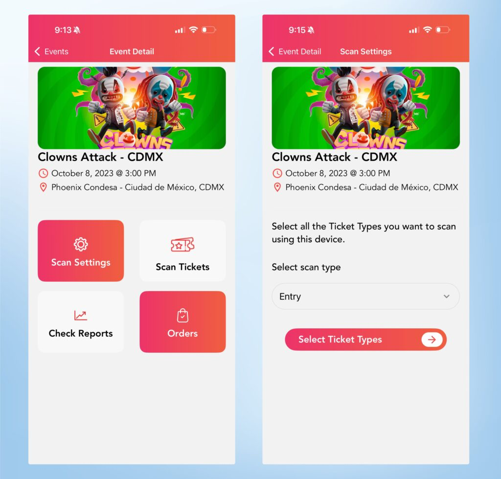 The operational challenge: Multiple ticket types — Day 1 passes, Day 2 passes, and two-day combo packages. Each type needed to scan correctly on the right day without cross-day validation errors. Walk-ins needed to purchase at the door. VIP upgrades needed to process without disrupting gate flow.