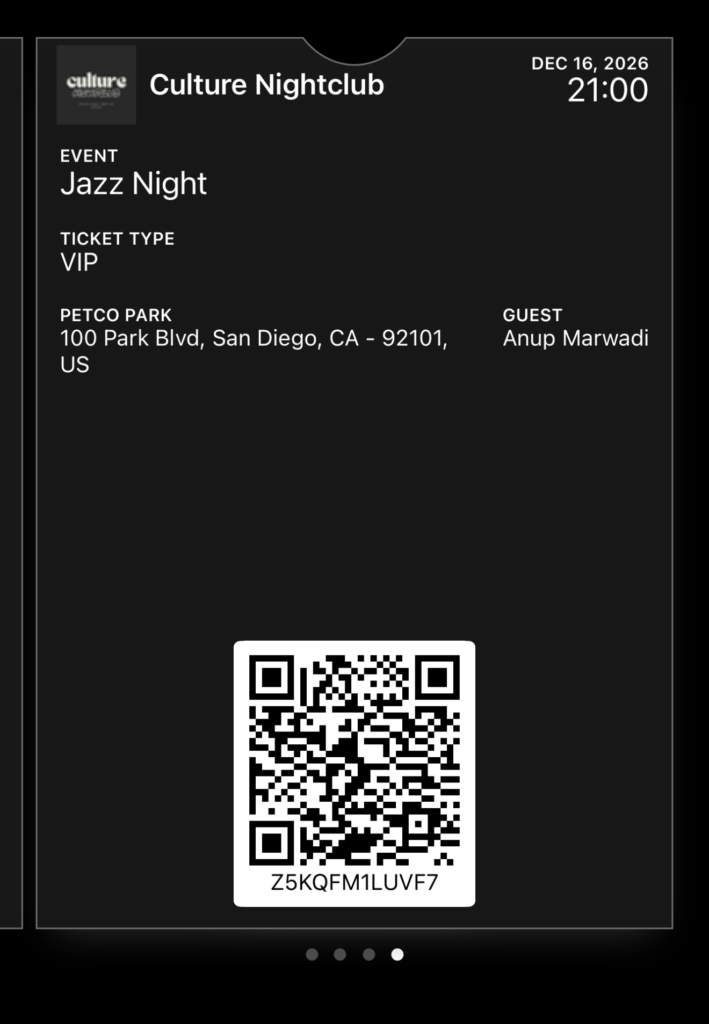 Digital wallet passes are increasingly how attendees store their tickets. TicketBlox generates Apple Wallet and Google Wallet passes that display: