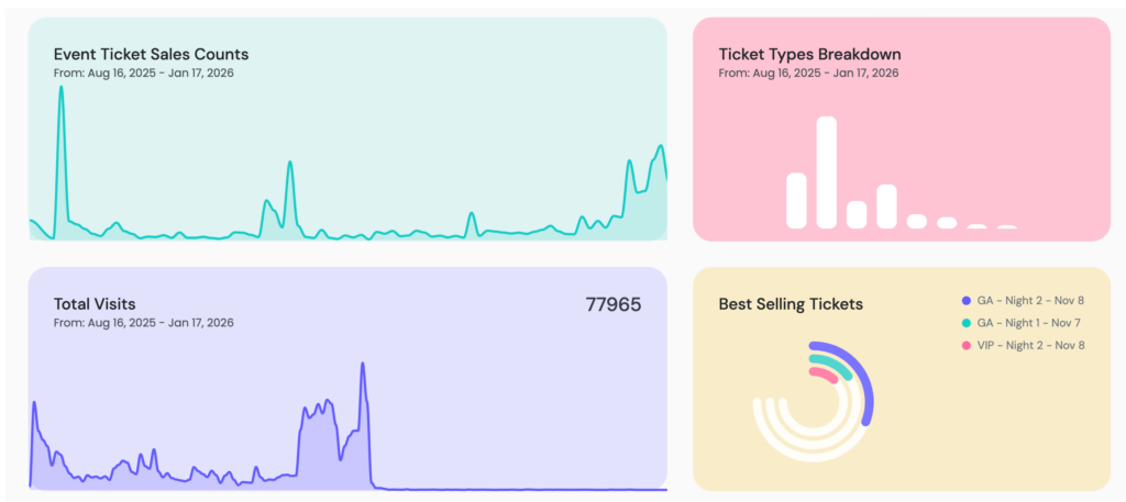 This dashboard is your command center. Promoters who are used to flying blind on event day consistently describe real-time visibility as the single most impactful operational upgrade.