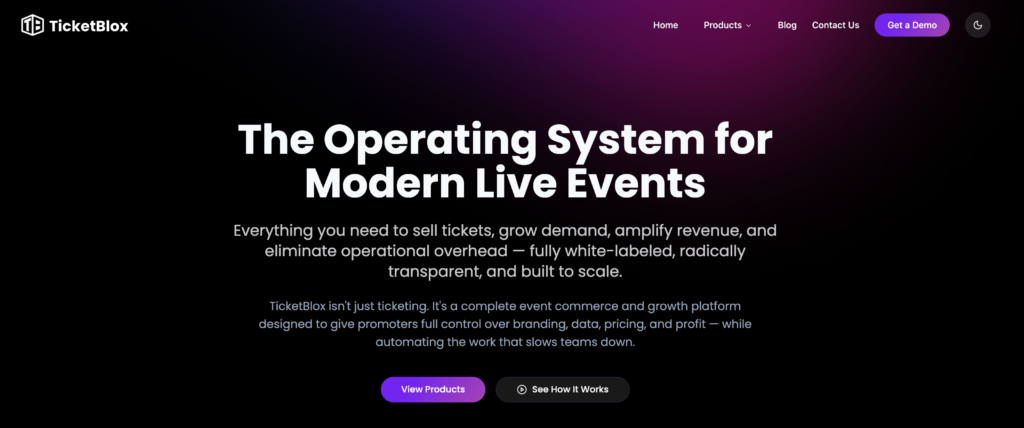 TicketBlox positions itself as “The Operating System for Modern Live Events,” giving promoters control of their brand, data and revenue streams.